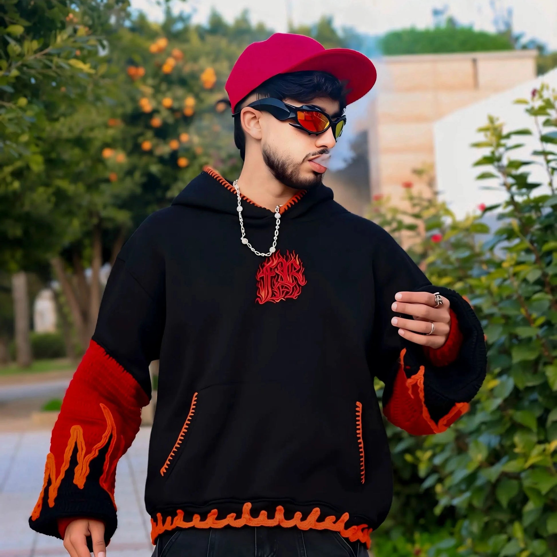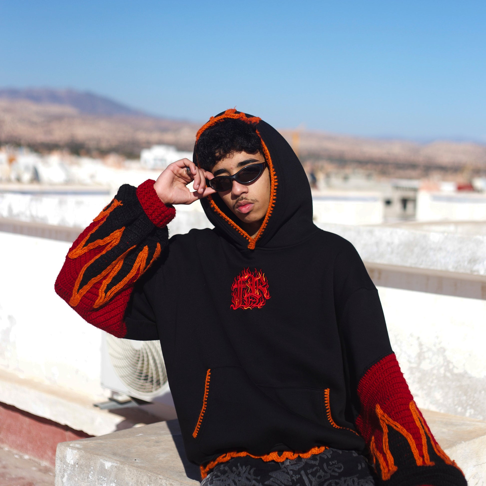 “Finar” black hoodie mixed mabin toub d9bya 340GSM WSOFA b 3 colors k7el ,7mer worange, fih design dyal l3afya 🔥3D handmade 100% ,fcenter kayn logo dyal our brand finar cha3ela fih l3afya .kola hoodie tatakhed 3 days bash tkon wajeda so hadshy ty3nny bila atkon limited bzef (Design by finar 100% mymknsh tel9ah fblassa khera)